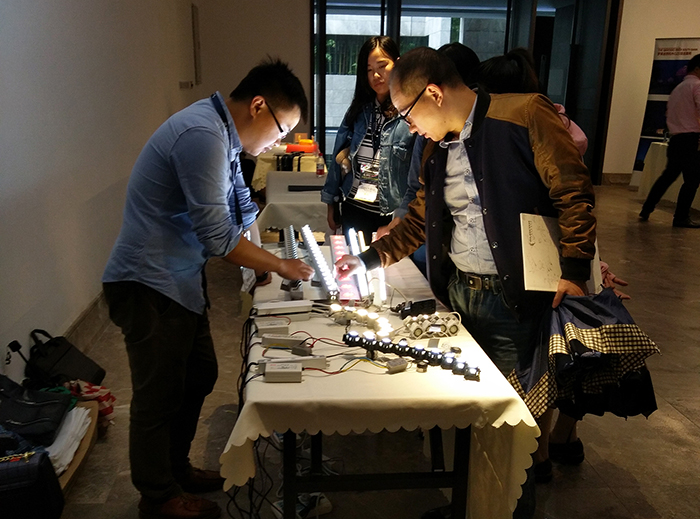 會議廳外,展示有勇電二次封裝點(diǎn)光源、線條燈、洗墻燈、大功率系列等照明燈具,參會嘉賓能夠更直觀的了解到勇電照明燈具在不同工程項(xiàng)目上的個性化應(yīng)用。勇電大功率系列燈具解決了傳統(tǒng)戶外大功率LED燈具結(jié)構(gòu)防水的高成本、低穩(wěn)定性等問題,實(shí)現(xiàn)了光源模塊組合成洗墻燈、投光燈、水下燈等各種不同用途大功率LED燈具,可在水下、地下、外墻直接使用,適用范圍廣泛,吸引了很多參會嘉賓的關(guān)注。