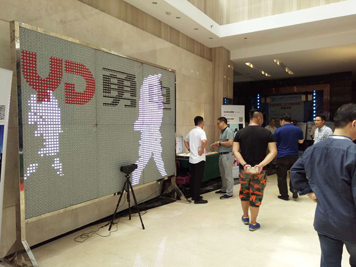在燈具展示區(qū),與會(huì)人員可以通過簡(jiǎn)單的肢體動(dòng)作來控制屏幕燈光的的變化,近距離體驗(yàn)勇電體感互動(dòng)控制系統(tǒng)所帶來的新奇有趣的燈光玩法。