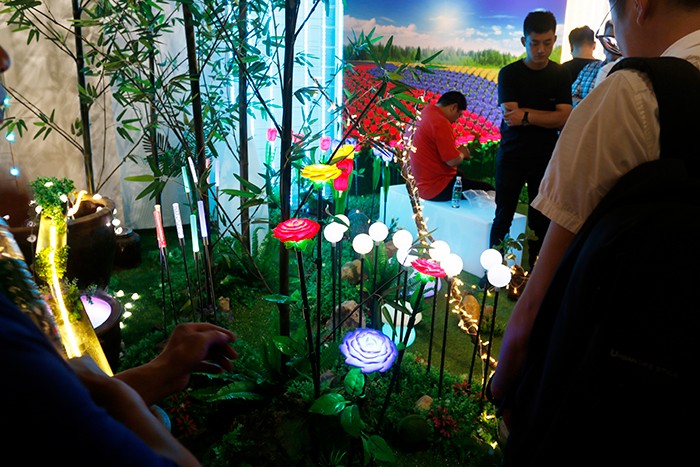在30日上午新產(chǎn)品發(fā)布環(huán)節(jié),參會人員一行前往杭州星河燈具市場,先后參觀了勇電及法拉沃展廳。