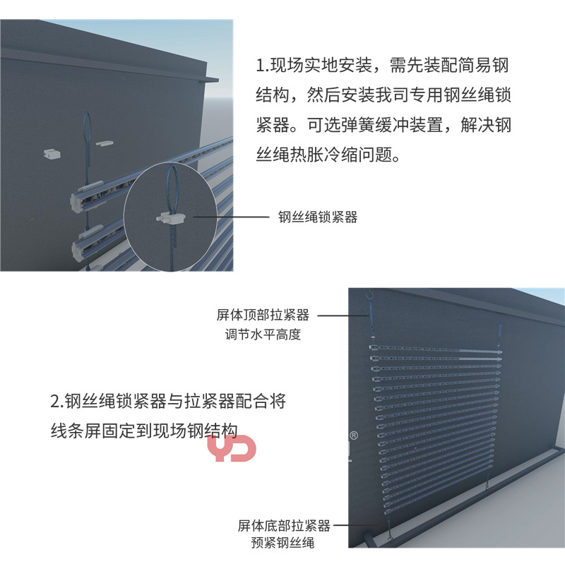 勇電W系列透明線條屏重磅來(lái)襲啦,該款透明屏區(qū)別于現(xiàn)有的模塊化框架結(jié)構(gòu)硬屏,為鋼絲繩結(jié)構(gòu)透明線條屏!