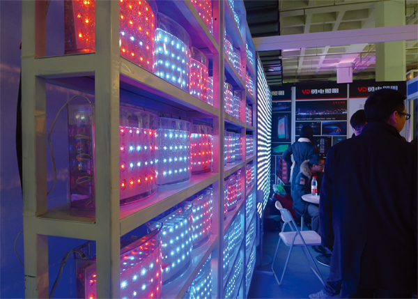 由72個(gè)魚缸和2304顆防護(hù)等級(jí)達(dá)到IP68的Φ20二次封裝LED點(diǎn)光源,每個(gè)魚缸中有許多小魚來回游動(dòng)組合成一面大型LED“魚缸顯示屏”,在2012中國(guó)(北京)國(guó)際照明展暨LED照明技術(shù)應(yīng)用展覽會(huì)亮相,引起了與會(huì)都爭(zhēng)相參觀。如此富有新意的展臺(tái)布置及高品質(zhì)的防水LED燈吸引了眾多參觀者的目光,新聞媒體也對(duì)我司進(jìn)行了現(xiàn)場(chǎng)采訪。