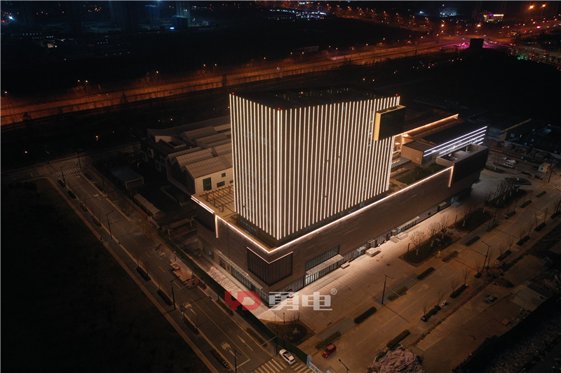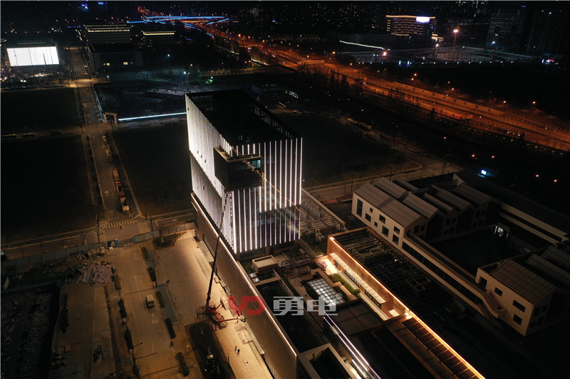 項目燈具采用勇電定制軌道安裝于樓體立面,安裝橫向間距為1.4米。燈具外殼顏色根據(jù)樓體顏色進行了定制噴塑,與建筑完美結合,白天不影響建筑觀感。