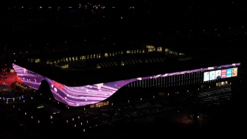 光與建筑融為一體,為建筑發(fā)“聲”。燈具采用智能控制,賦予了建筑各種豐富的動態(tài)“表情”,讓建筑外立面在不同營業(yè)時間段、不同節(jié)日能夠自由調(diào)節(jié),滿足功能性照明的前提下,實現(xiàn)節(jié)能環(huán)保。