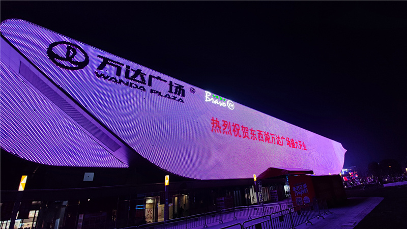 通過光影打造細膩、精致的商業(yè)氛圍,形成時尚靈動、大氣現(xiàn)代的夜間整體立面風(fēng)格,以大面積媒體屏彰顯東西湖萬達廣場商業(yè)地標建筑的風(fēng)范。