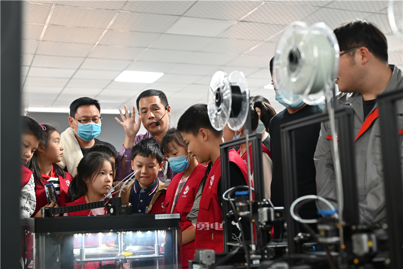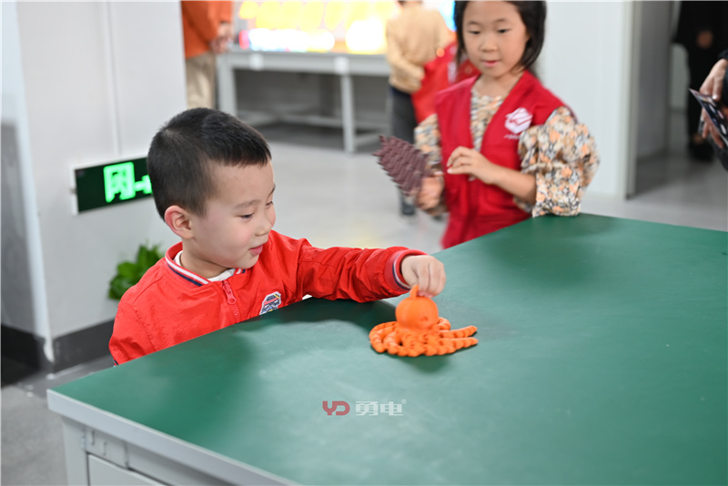 理論課堂結(jié)束后,劉騰海老師帶領(lǐng)小朋友們參觀了勇電生產(chǎn)車間,了解了燈具制作的不同步驟,接著小朋友們來到了勇電實(shí)驗(yàn)室、3D打印車間及勇電展廳,體驗(yàn)了一場盛大的奇妙燈光之旅。同時(shí)互動(dòng)燈光、3D打印也打開了小朋友們的科技新視界,讓他們對光電有了更深刻的認(rèn)識。