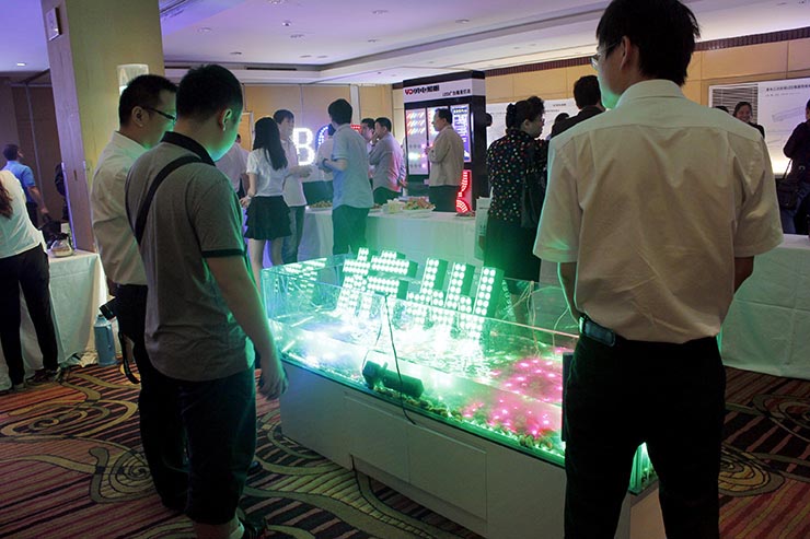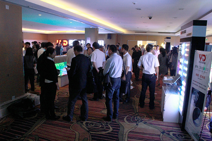 在會場的外圍場館,勇電照明有限公司將二次封裝產(chǎn)品做了一一展示,由二次封裝LED點光源組成的巨大顯示屏可隨時播放會議的主題、動畫等,浸入水中的LED光源更加吸引設(shè)計師們的眼光,同時展出的還有絢麗多彩的LED球泡燈、用于體現(xiàn)輪廓的線條燈、投光燈等等,新產(chǎn)品橋梁專用燈則讓大家連連驚嘆,一體化的結(jié)構(gòu)模式能夠同時實現(xiàn)兩種不同的照明效果,以實現(xiàn)不同的表現(xiàn)需求。勇電二次封裝LED產(chǎn)品讓設(shè)計師朋友將他們的藝術(shù)創(chuàng)意得到充分地實現(xiàn),同時,產(chǎn)品的開發(fā)應用也得到了設(shè)計師朋友們的高度贊揚。