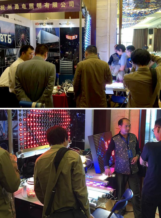 與此同時(shí),會(huì)議之外還設(shè)定了會(huì)員單位展臺(tái),勇電照明此次展示的有線條燈、大功率洗墻燈等多款戶外照明產(chǎn)品,參展客戶對(duì)公司的產(chǎn)品產(chǎn)生了濃厚的興趣,針對(duì)大功率系列燈具咨詢了很多技術(shù)上的問(wèn)題。